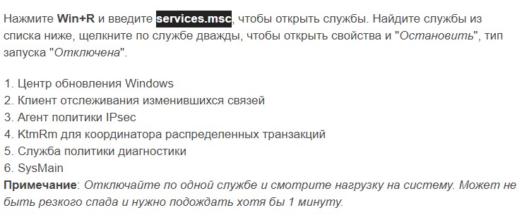 Для улучшения производительности слабых ноутов (процессор слабый, например) можно отключить следующие службы: